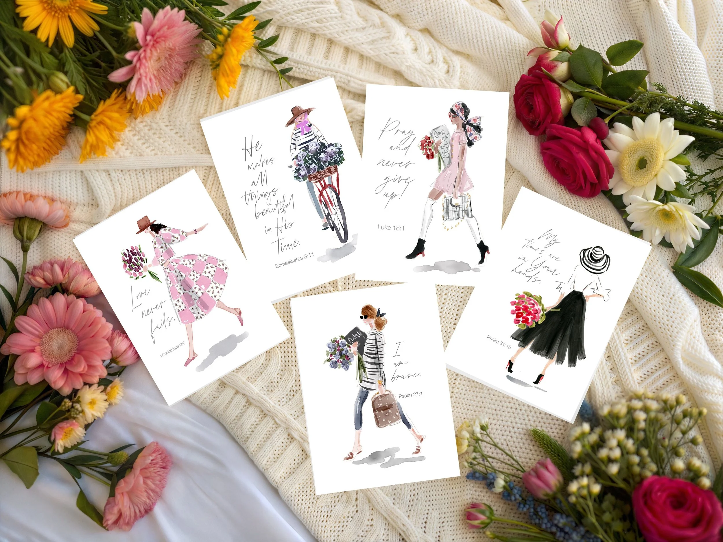 Set of 30 faith and fashion inspired prayer cards. Tuck them in books, share them with friends, display wherever you need a reminder of God’s deep love for you!